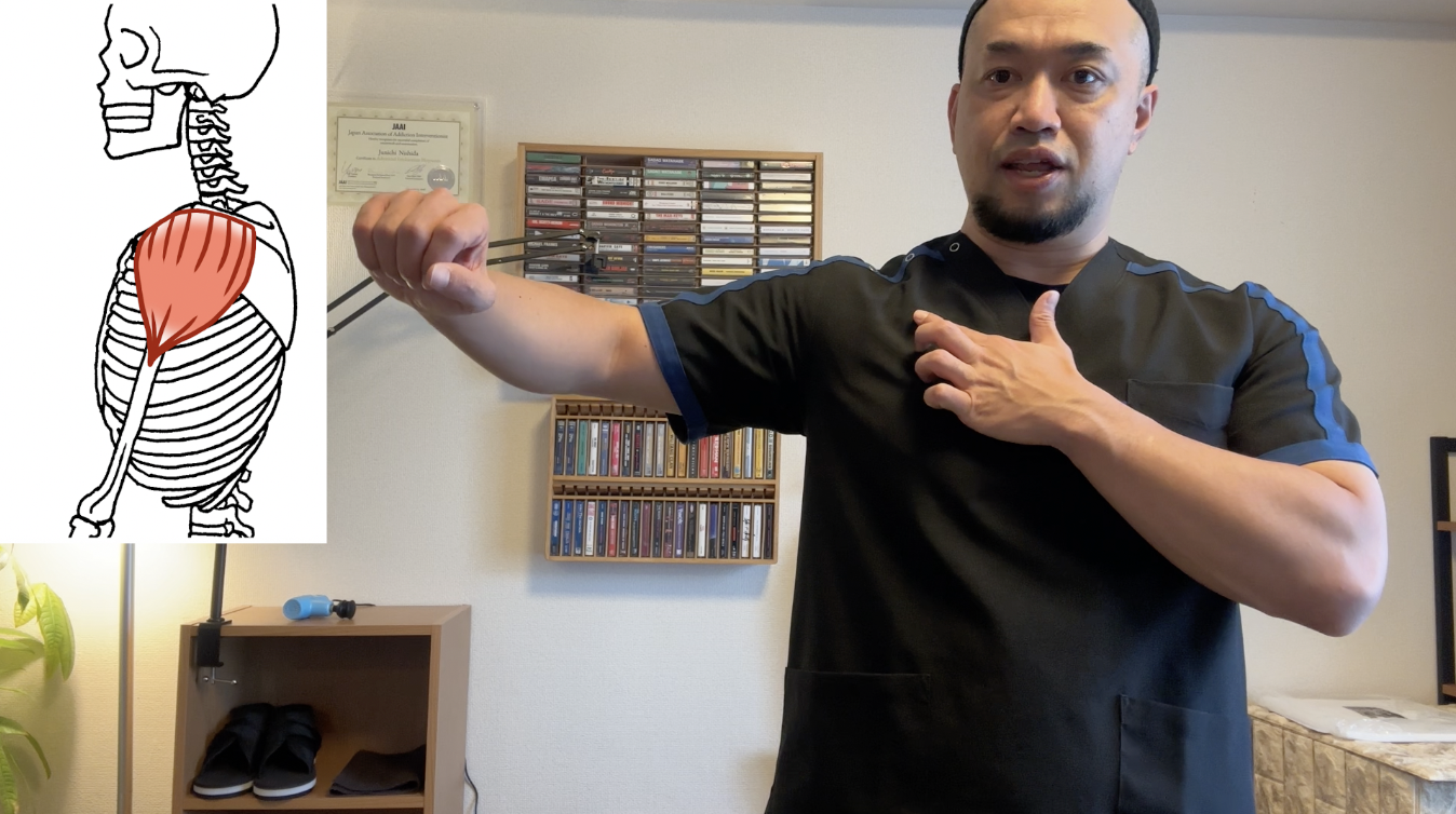 あまり強くない筋肉(棘上筋)に余計な負担がかかってしまい、それが次第に慢性的な肩の痛みにつながってしまいます。
