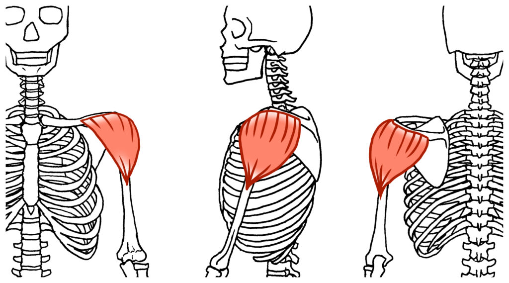 ・肩を構成する筋肉(鎖骨、肩甲骨から始まって上腕につく)