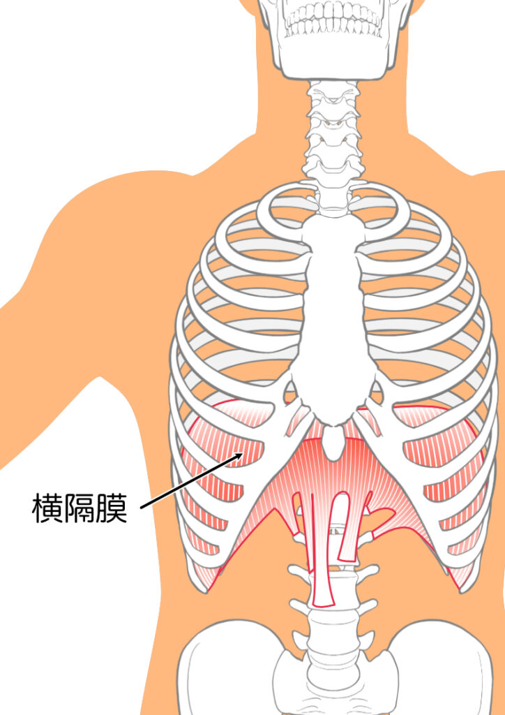 横隔膜はドーム状のアーチ構造をしていて、空気を肺に入れるときにドームのてっぺんが下に沈んでいき胸腔にスペースを作ります。