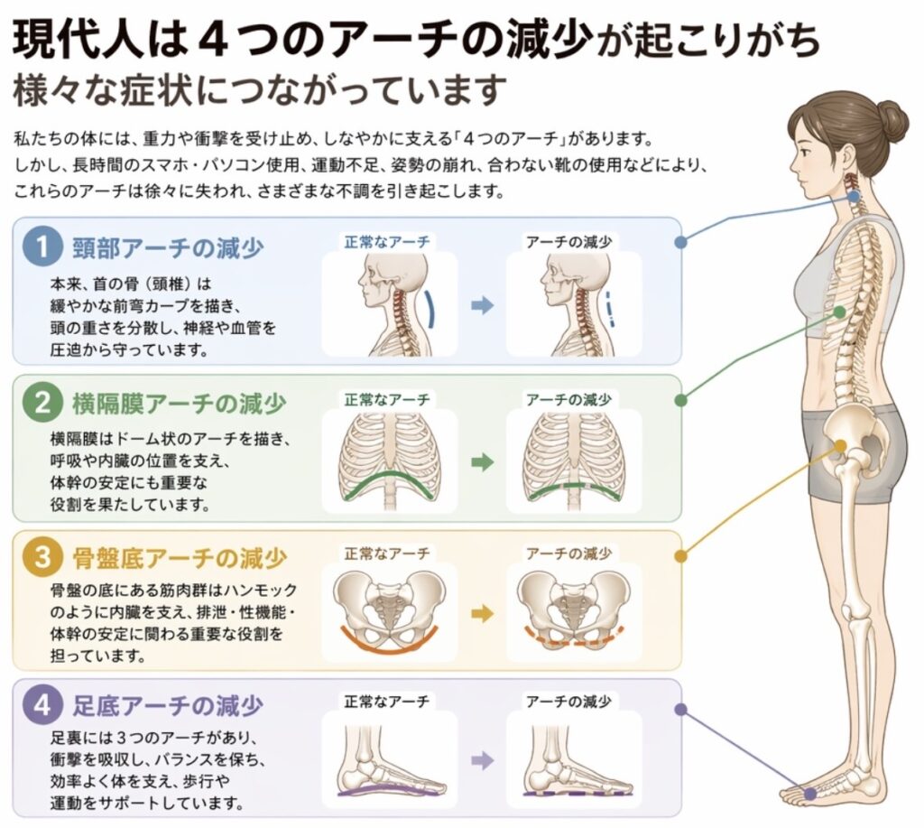 なぜ現代人は4つのアーチが崩れるのか?